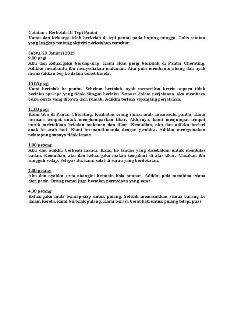 Contoh karangan berita sekolah menengah. Anda dan keluarga anda berkelah di pantai yang menarik pada hari minggu yang lalu. Tulis sebuah catatan sepanjang kamu mengikuti perkhemahan tersebut.